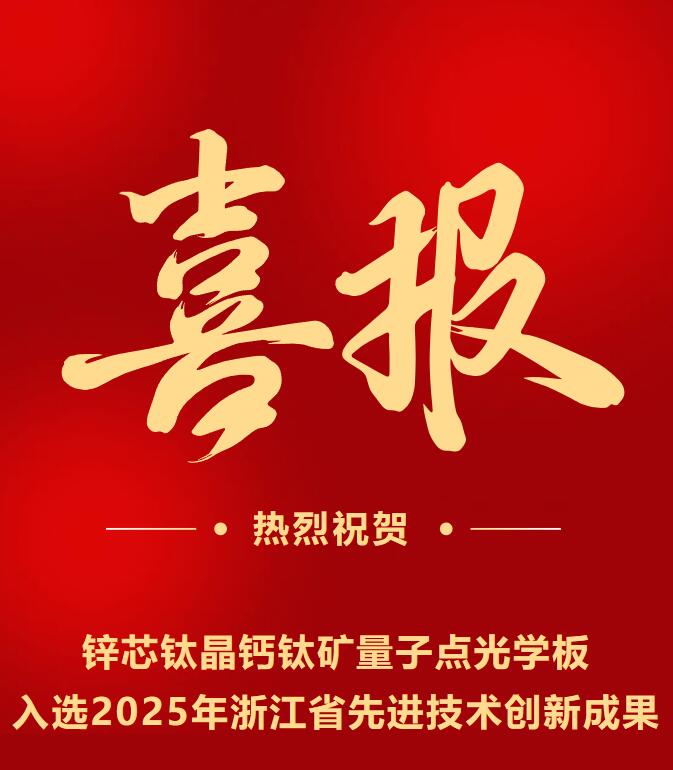 近日,浙江省经济和信息化厅正式公布”2025年浙江省先进技术创新成果“名单,锌芯钛晶自主研发的“钙钛矿量子点光学板” 凭借突出的技术创新性与产业化价值成功入选。